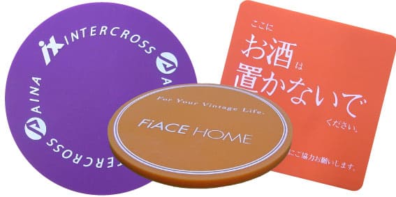 飲み物を置くときに使うコースターは、オリジナルグッズとしても人気があります。コースターは形や素材、印刷方法などを自由に選べます。