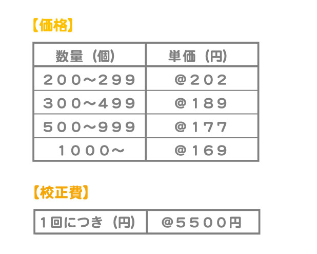 ※ 上記以外の数量は別途お見積りとなります