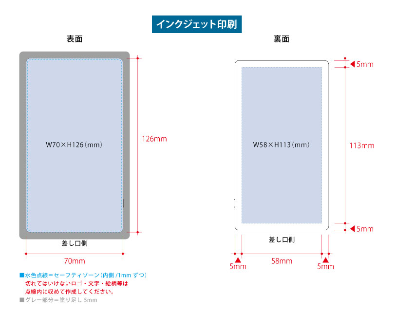 全面印刷できるモバイルバッテリー 4000mAh の本体サイズと印刷サイズは、以下にてご確認ください