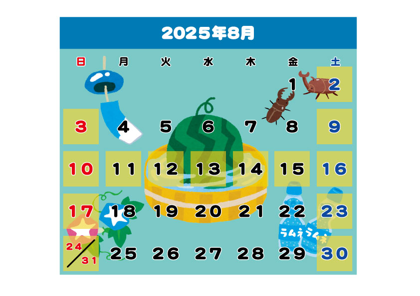 2025年8月の営業カレンダー
